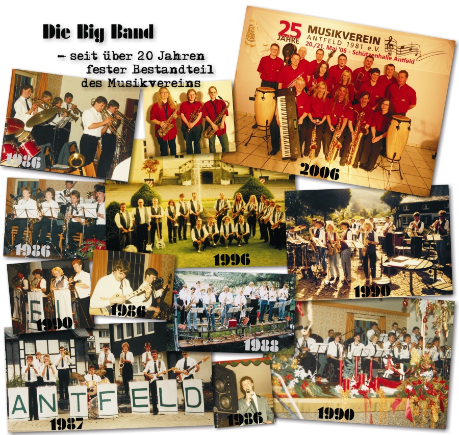 Bereits Ende der 80er, als die ersten Schützenfeste gespielt wurden und nur wenige Jahre nach der Gründung des Musikvereins selbst, wurde die Big-Band ins Leben gerufen. Sie besteht aus 10-15 Musikern und ist mit ihrer flotten und modernen Tanzmusik nicht nur ein abwechselungsreicher Gegenpol zur volkstümlichen Blasmusik, sondern auch Garant für gute Partylaune und vor allem volle Tanzflächen!