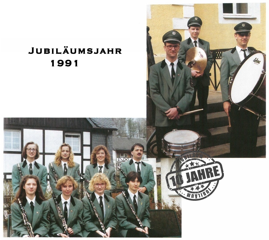 Dass der Musikverein nach den ersten schwierigen Jahren jetzt bereits 10 Jahre alt wurde, sollte 1991 gebührend gefeiert werden. Schon im Frühjahr liefen die Vorbereitungen für ein zweitägiges Musikfest auf Hochtouren.